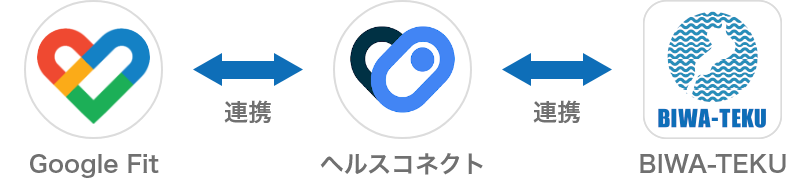 従来BIWA-TEKUアプリの歩数情報は、Google Fitアプリと連携し、Google Fitアプリの歩数情報を反映しておりました。しかし、令和7年1月以降Google Fitアプリから歩数情報を取得することができなくなり、新たに「ヘルスコネクト」アプリとも連携し、歩数情報を取得する必要がある為、連携のご対応をお願いいたします。