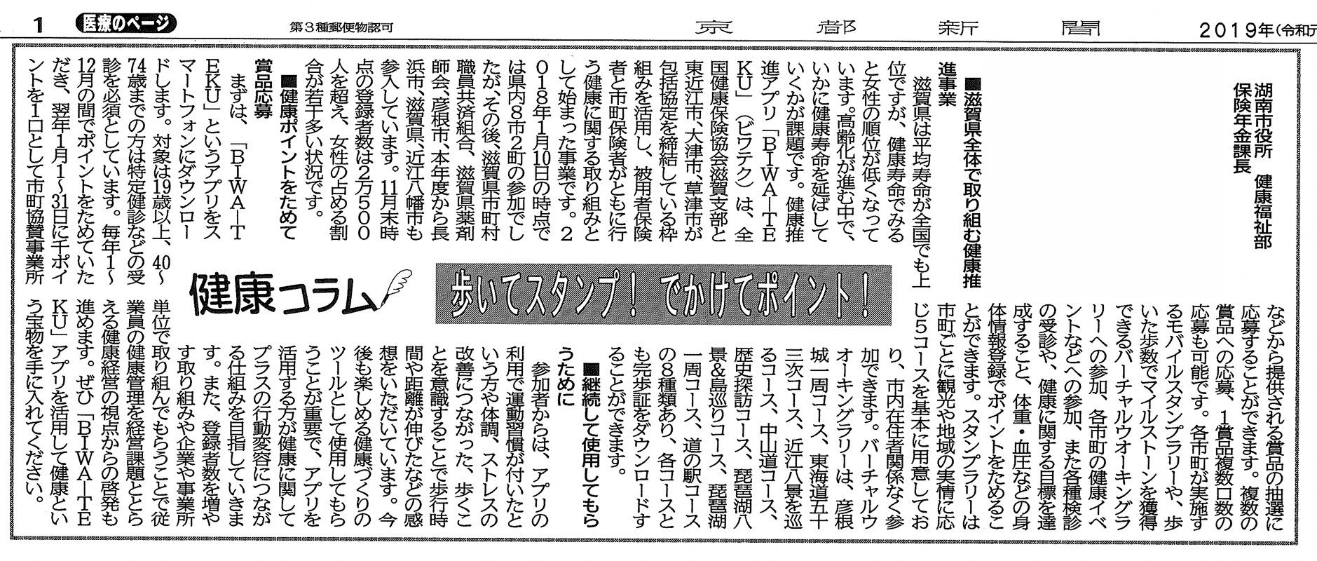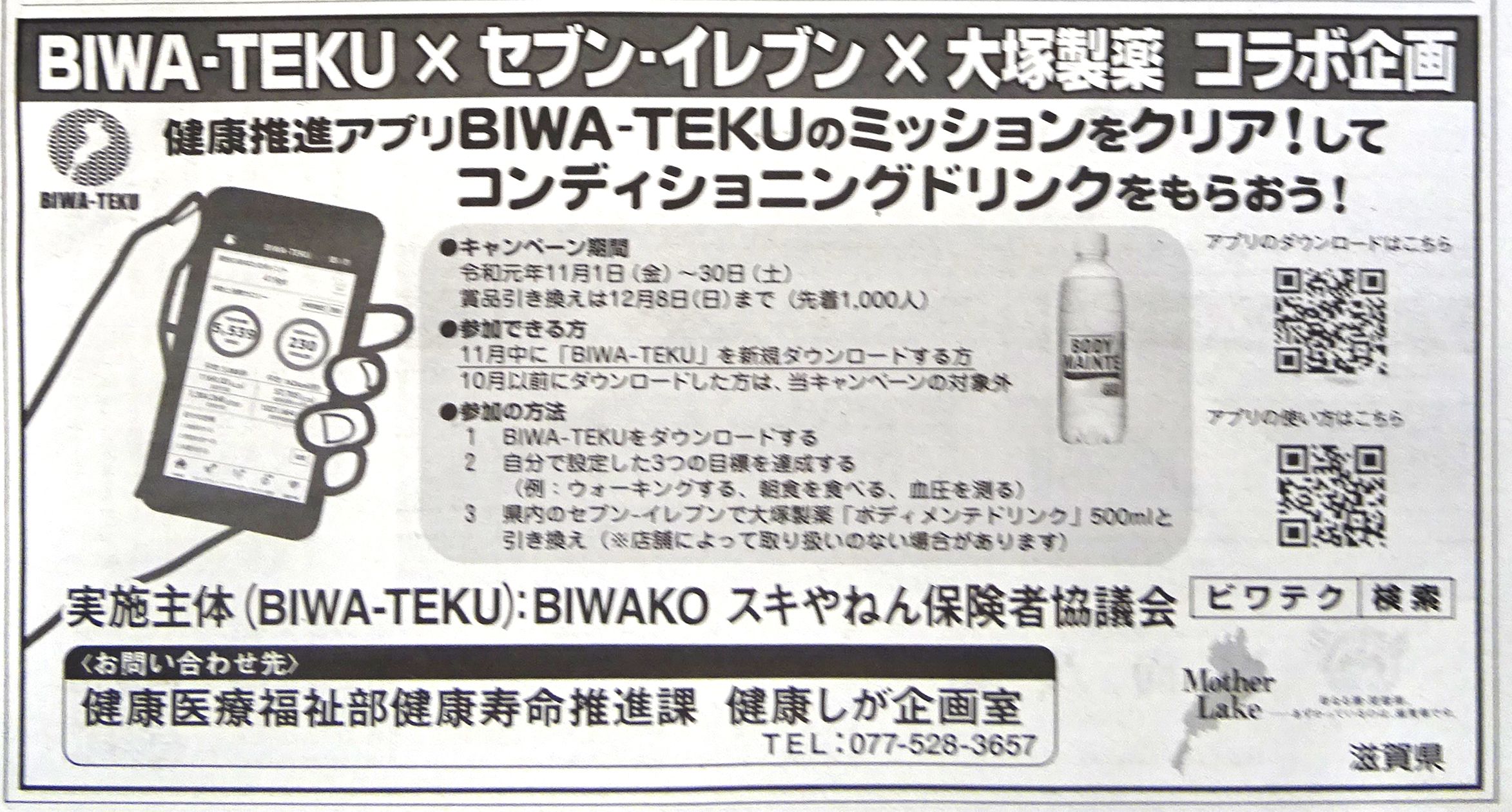 2019年12月6日(金)より、BIWA-TEKUアプリに滋賀県が参加されました。