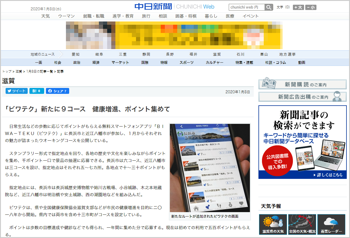 2020年1月1日(水)より、BIWA-TEKUアプリに長浜市、近江八幡市が参加されました。
